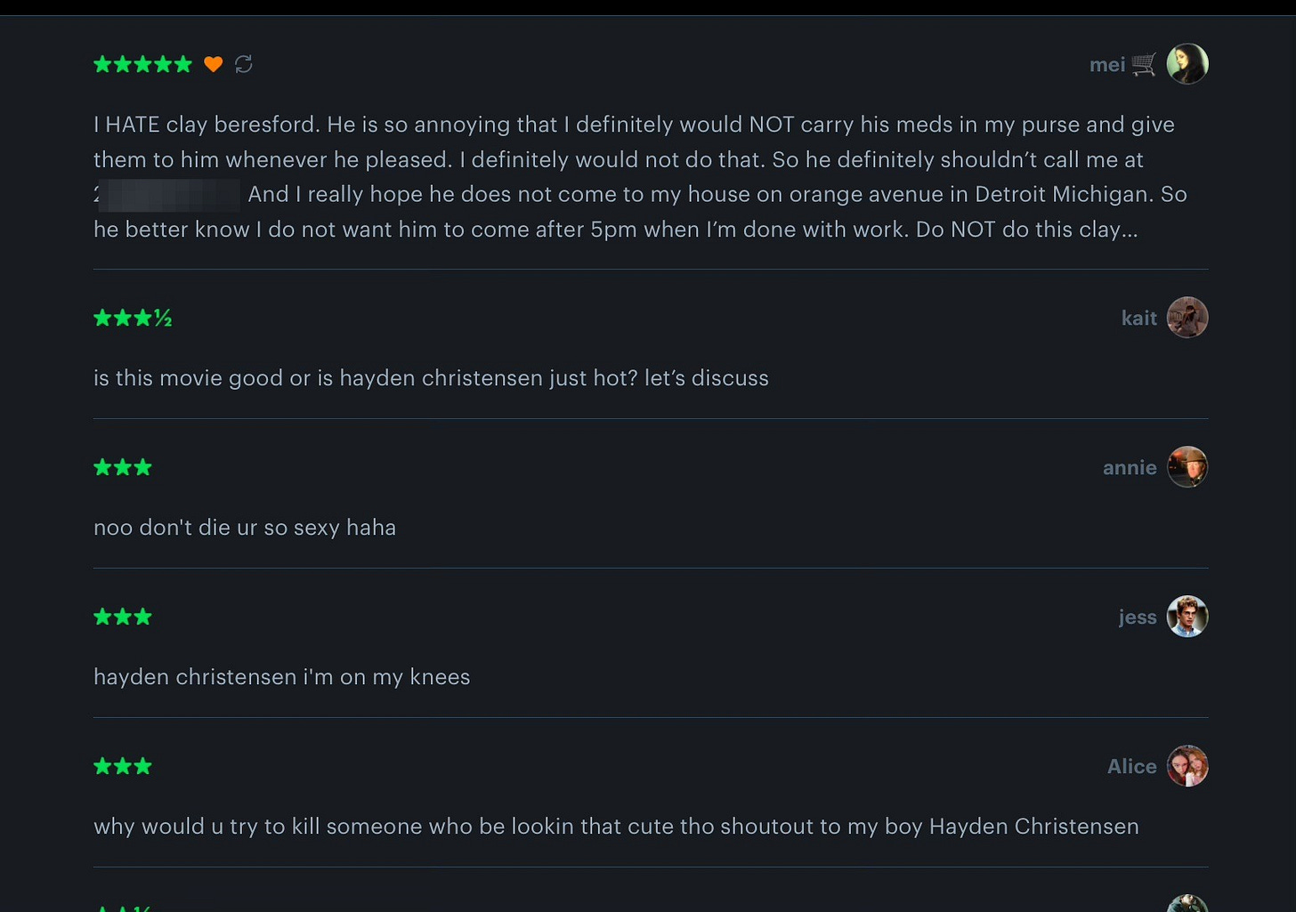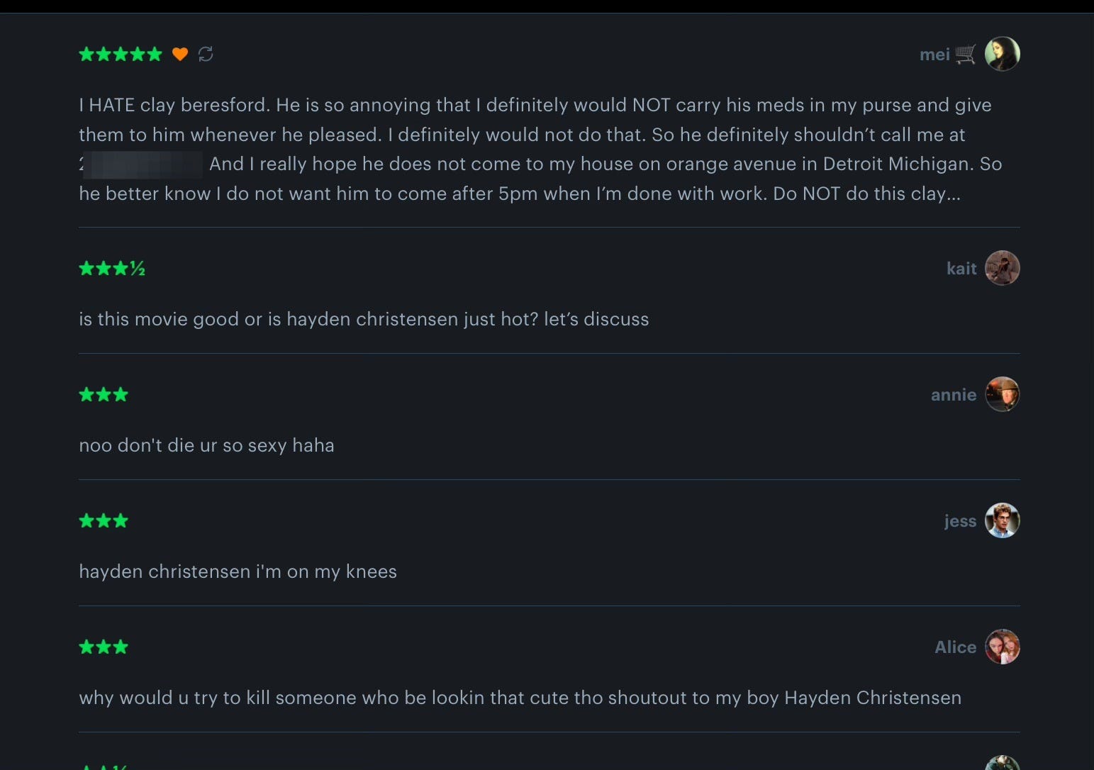 Fun cameo: One scene of the film takes place at a Halloween costume party. While there, Clay briefly talks to another guest played by David Harbour dressed as Dracula. In the credits, David Harbour is credited as “Dracula”. I am choosing to believe that David Harbour plays the immortal vampire Count Vlad “The Impaler” Dracula who in 2007 would just show up at costume parties on Halloween dressed as himself for funsies.
